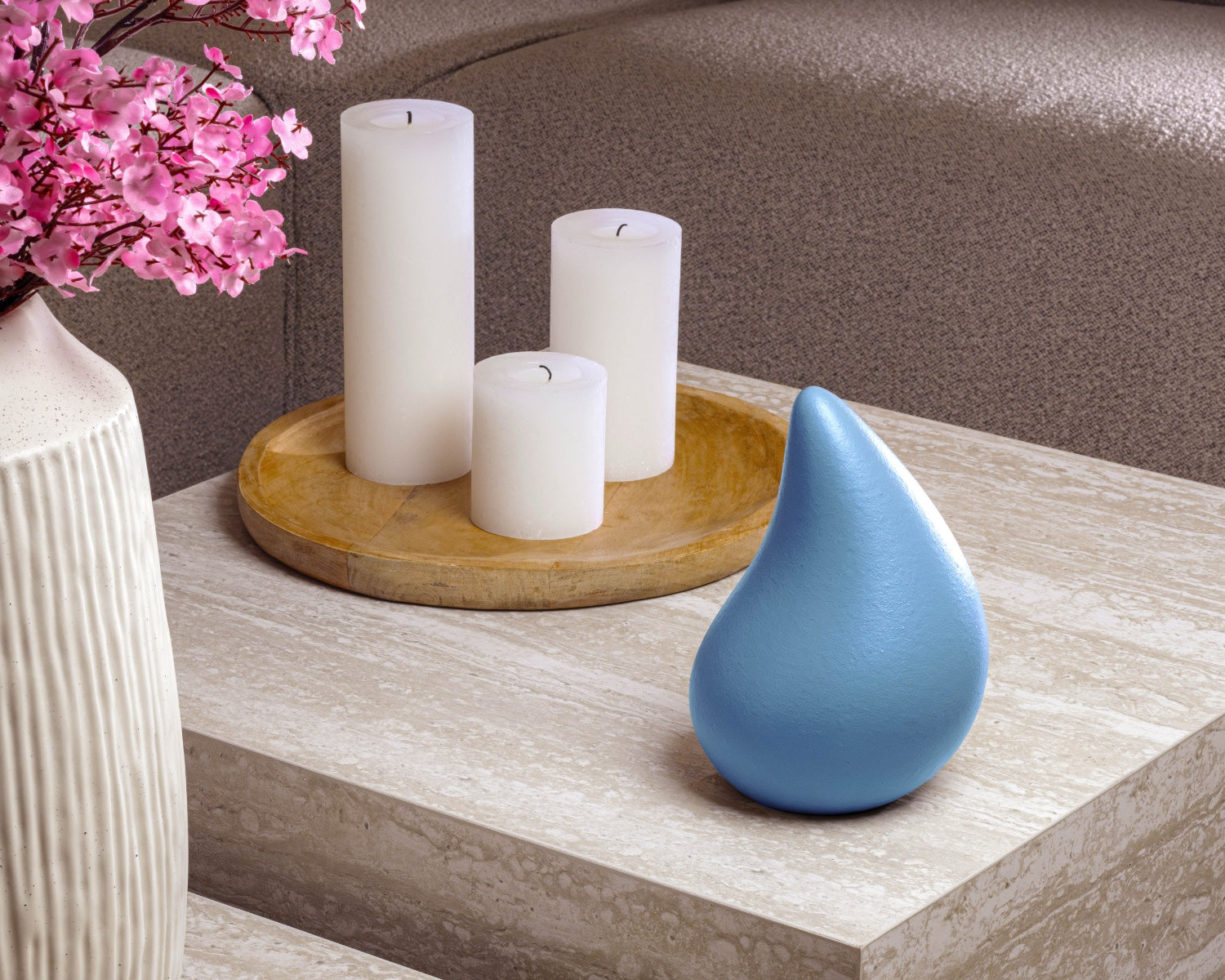 Onze urnen kenmerken zich door hun verstilde eenvoud en zachte lijnen. Elke vorm is met zorg ontworpen om rust uit te stralen, puur en tijdloos. De sobere esthetiek laat ruimte voor persoonlijke beleving en voegt zich moeiteloos in elk interieur.